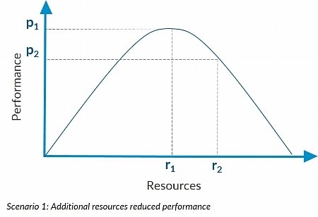 Nice theory but how can you tell if under-performance is due to too many or too few resources?
