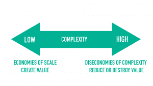 In this situation any value created through economies of scale is lost thought diseconomies of complexity. The complexity of the transaction now costs more than any economies of scale achieved.