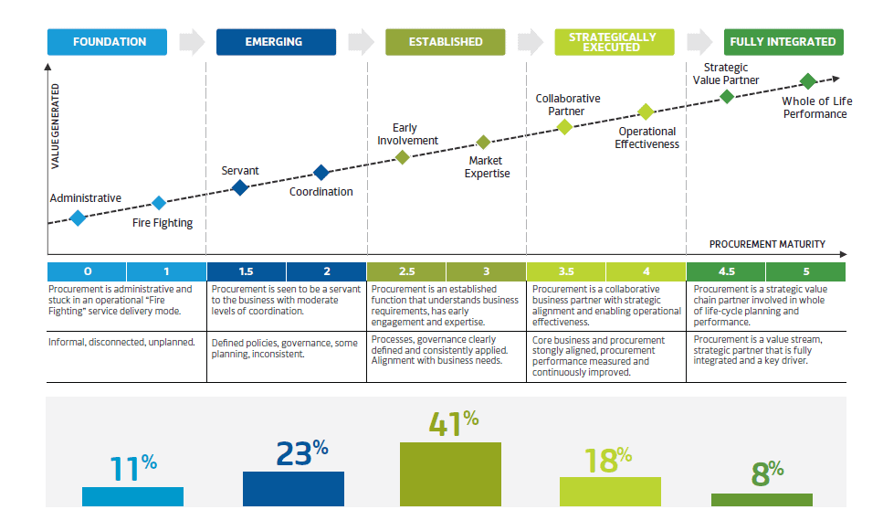 While procurement has been around as a corporate support function for almost half a century, many organisations are still in the process of establishing a professional procurement function. This is a journey that ultimately leads to a maturity level that is reflective of the value that procurement can add to the business and the risk appetite of the organisation.