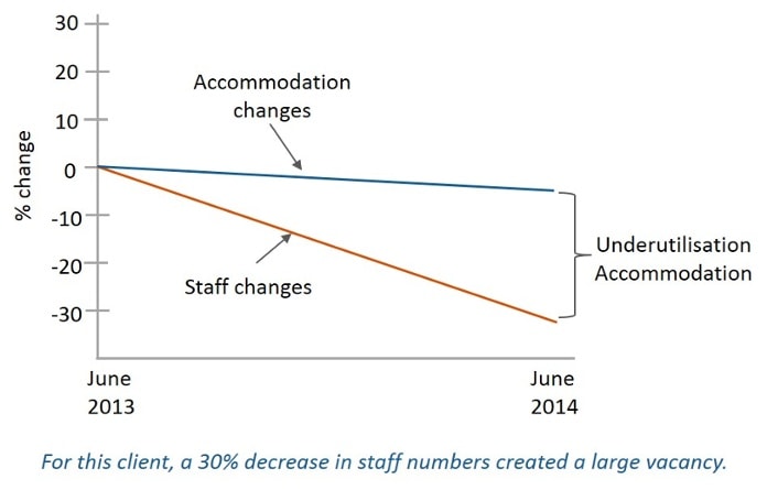 Major shifts in an individual business unit’s demand for accommodation within the corporate sector are common. Restructure, change in strategy and M&A work mean that the demand for accommodation is notoriously hard to forecast.